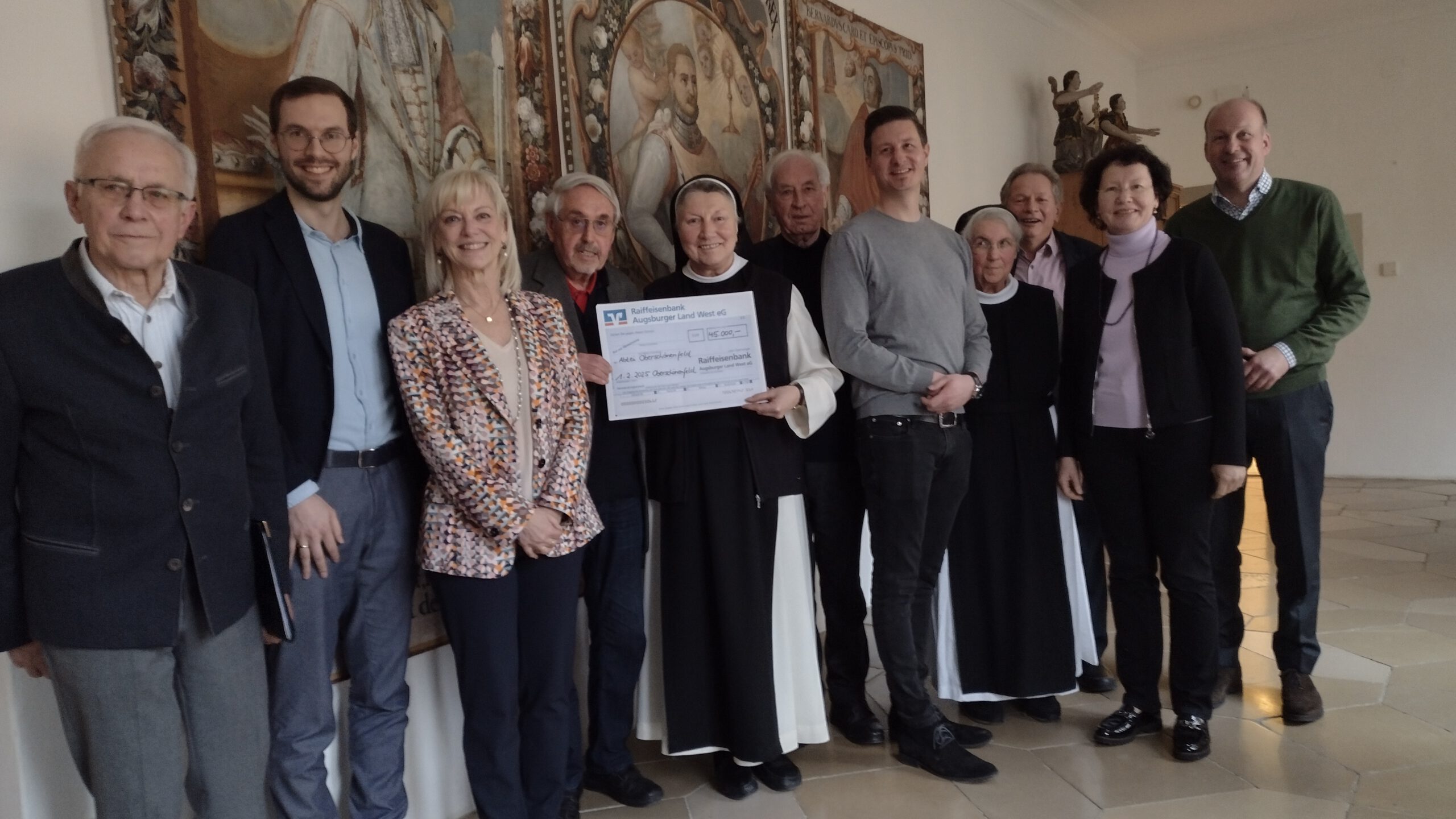 Strahlende Gesichter bei der Spendenübergabe des Freundeskreises durch deren Vorsitzenden Ferdinand Reithmeyr an Äbtissin Gertrud Pesch.
