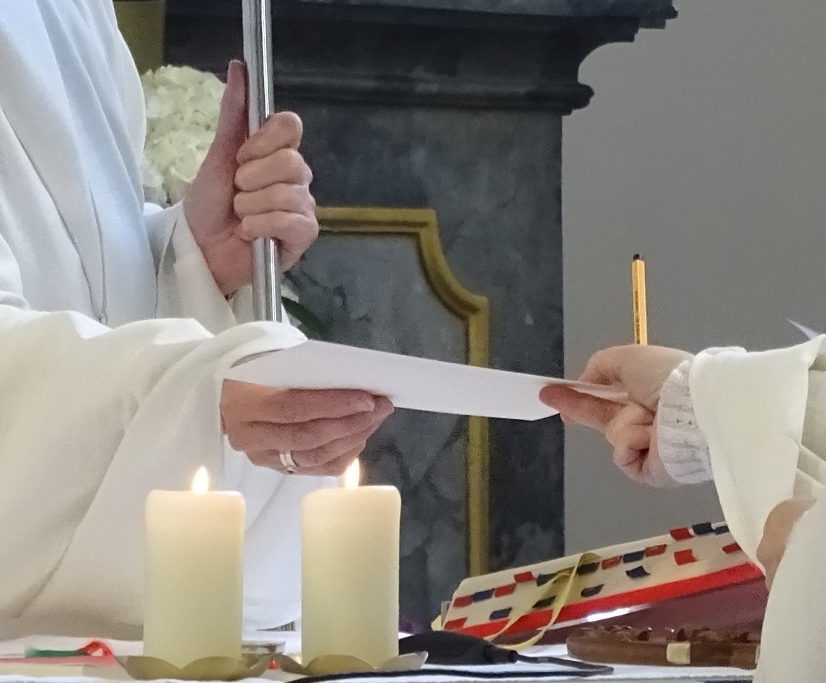 Von Herzen wünsche ich Ihnen Freude an ihrer Berufung, Vertrauen und Freude für diesem Weg, um Gottes Liebe in dieser Welt hineinzutragen.
