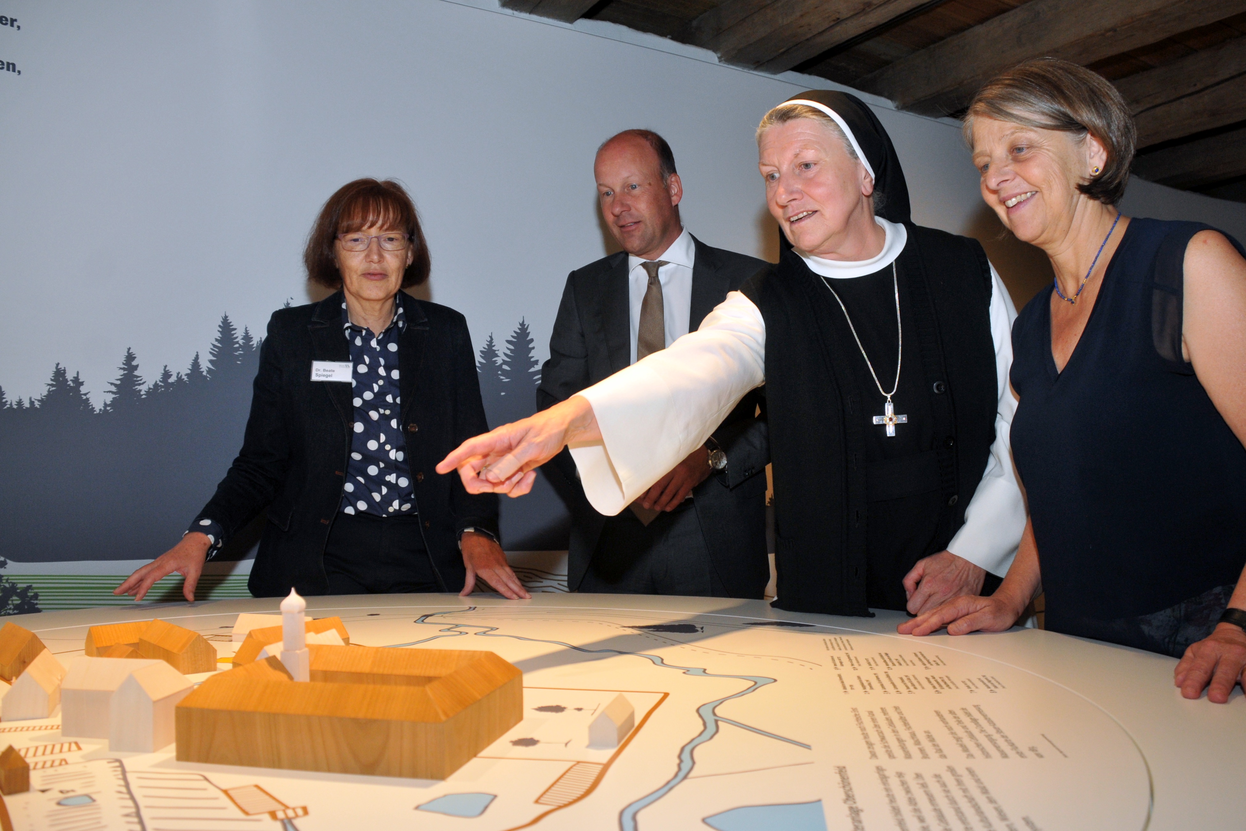 Hauptleihgeberin − von äußerst seltenen und wertvollen Exponaten − dieser neuen Dauerausstellung ist die Abtei Oberschönenfeld. Die Äbtissin, M. Gertrud Pesch O.Cist., dankt dem Bezirk Schwaben, dem tollen Museumsteam um Frau Dr. Spiegel und ausdrücklich auch Sailers Vorgänger, Altbezirkstagspräsident Jürgen Reichert für das langjährige Engagement: „Sie ermöglichten den Weg zu einer neuen Dauerausstellung über unser − der Öffentlichkeit weitgehend verborgenes − klösterliches Leben und Wirken an diesem Ort, womit ein lang ersehnter Wunsch seitens der Abtei in Erfüllung ging. Die Ausstellung will helfen“, unterstreicht die Äbtissin, „ins tiefere Verstehen und Verständnis des monastischen Lebens hinter Klostermauern zu gelangen.“