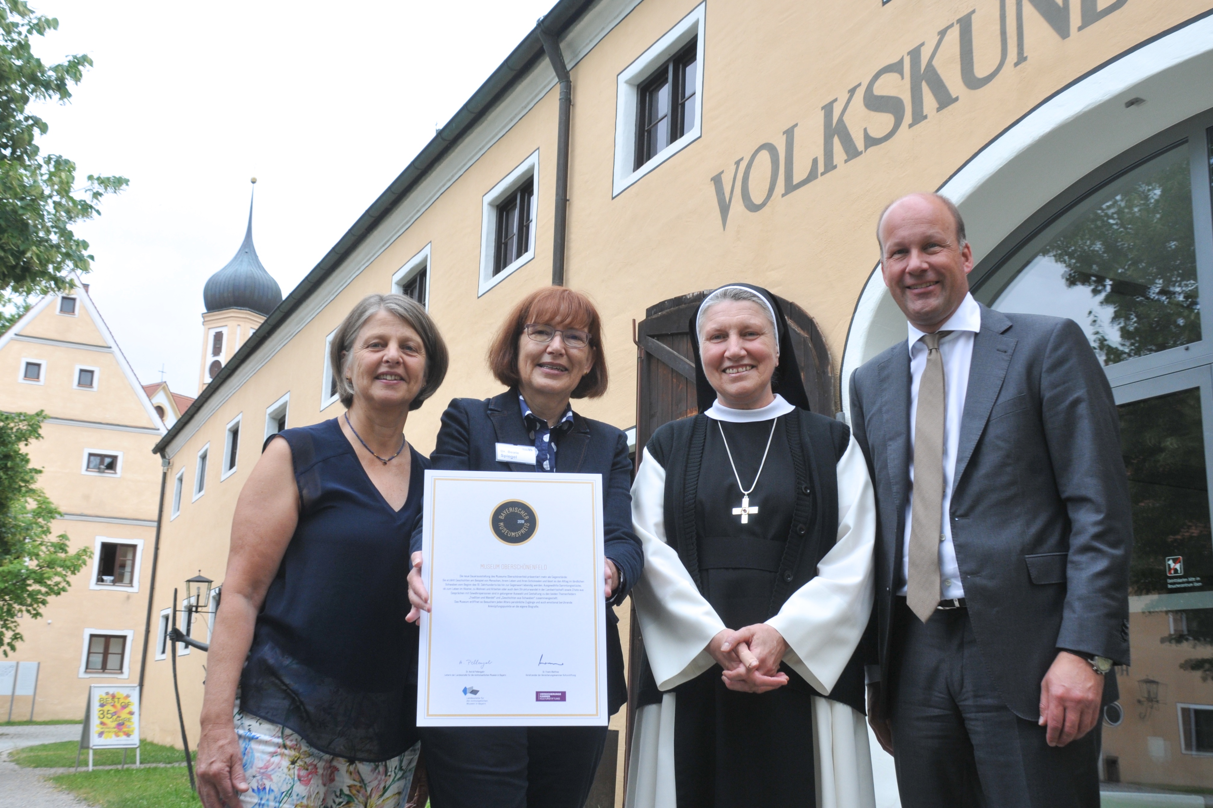 Das „Flaggschiff der Bezirks-Museen in Schwaben“ wurde am Bayerischen Museumstag Anfang Juli in Neumarkt/OPf. von der ´Versicherungskammer Bayern Kulturstiftung´ als nichtstaatliches Museum mit dem Bayerischen Museumspreis 2019 ausgezeichnet. Der Preis ist mit 20.000 Euro dotiert und wird alle zwei Jahre verliehen. Beim Presseempfang in Oberschönenfeld bekundeten Bezirkstagspräsident Martin Sailer und Museumsleiterin Dr. Beate Spiegel: „Wir freuen uns riesig über die Auszeichnung, sie ist Ehrung und Ansporn zugleich!“ Laut Sailer „hat sich damit gezeigt, dass der Entschluss des Bezirks Schwaben im Jahr 2008, seine Bezirksmuseen im Rahmen des Museumsausbauplans fit für die Zukunft zu machen, Früchte trägt!“