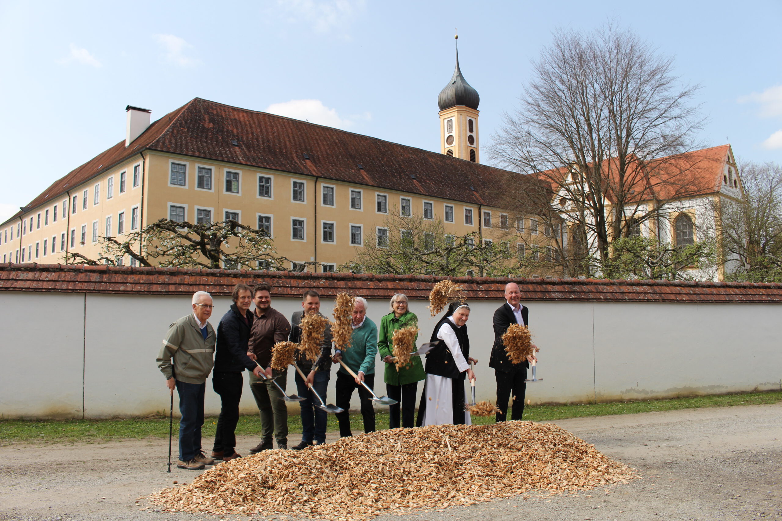 Ab kommenden Winter bezieht das Museum Oberschönenfeld des Bezirks Schwaben über seine Vermieterin, die Abtei Oberschönenfeld, klimafreundliche Wärme. Die Abtei und die Holzenergie Regio AG haben am Donnerstag mit einem symbolischen Spatenstich offiziell den Baubeginn für das geplante Nahwärmenetz eingeläutet. „Mit dem Wechsel von fossilem Öl auf den nachwachsenden Rohstoff Holz leistet unser Museum einen wichtigen Beitrag für einen nachhaltigeren Umgang – mit unserer Natur und mit öffentlichen Geldern“, betonte Bezirkstagspräsident Martin Sailer im Rahmen der Veranstaltung. „Ich bedanke mich bei meinem Kollegen, dem ehemaligen Bezirksrat und früheren Landtagsabgeordneten Max Strehle, der dieses Projekt durch seine Vermittlung gefördert hat.“